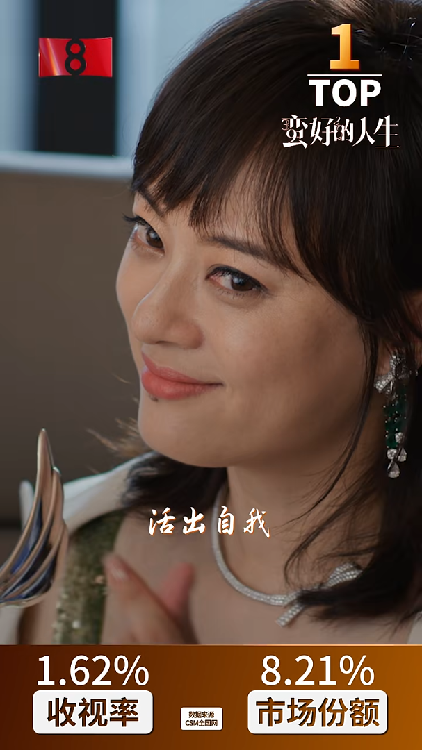1月8日,CCTV电视剧发布的“2025央八收视前十片单”显示,都市民生话题剧《蛮好的人生》以CSM全国网平均收视率1.62%、收视份额8.21%的优异成绩,稳居央八黄金档首播剧收视与市场份额双第一,并创下单集最高收视率2.17%的纪录,成为名副其实的“2025央八剧王”。