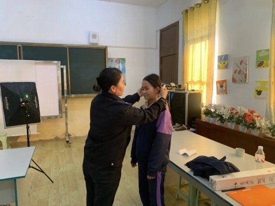 “看镜头,嘴角微微上扬,对,就这样保持住!”明亮的教室里,民警正温柔地为一年级小学生调整拍照姿势。