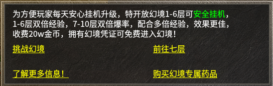 这里给大家提供几个升级技巧供参考:前期可前往蜈蚣洞、猪洞等经典练级点,配合每日登录赠送的双倍经验宝典快速升级;也可回收沃玛、祖玛装备换取大量经验;幻境一至六层支持安全挂机,后期地图经验更高,搭配双倍经验效果极佳。