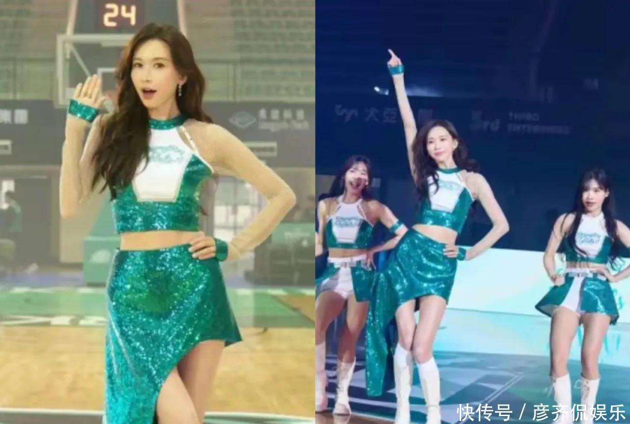 林志玲这次是冲朋友的面子来撑场子的。听说邀请她的篮球队董事长,太太还是她的高中学妹。这可是她头一回公开为篮球赛跳应援热舞。一身绿色中空紧身衣搭配同色系短裙,脚踩白色长靴,胳膊上套着闪闪的纱网,头上还别着俏皮头饰,那造型,标准的女团范儿。选的曲目是少女时代的经典舞曲,节奏快得飞起,动作幅度更是大得惊人。