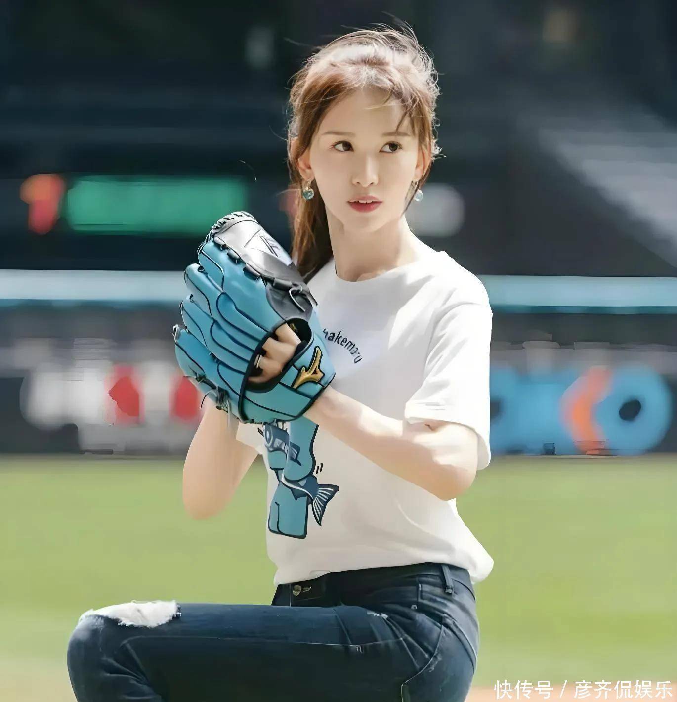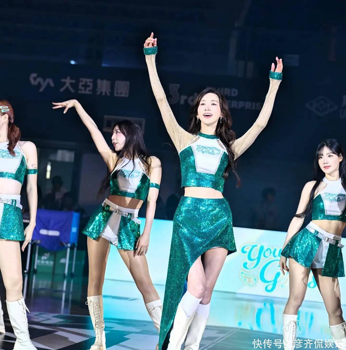 她全程稳居C位,扭腰、摆胯、比心,每个动作都精准卡点,一点没掉链子。表情管理更是没得挑,甜笑放电的模样,谁能看出她已是51岁的年纪?现场球迷瞬间沸腾,欢呼声一浪高过一浪,差点掀翻体育馆的屋顶。