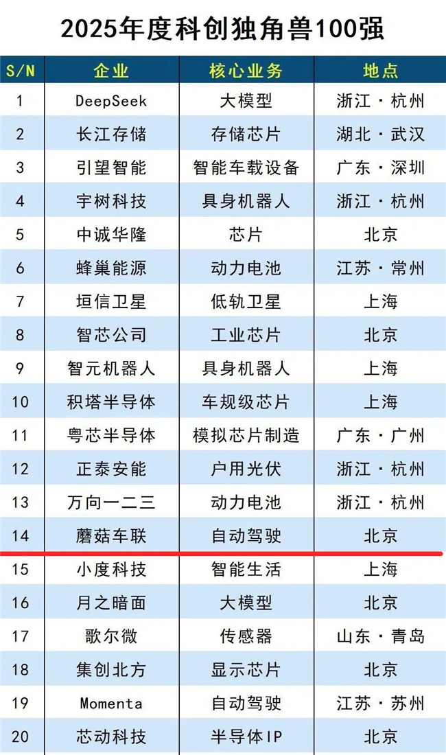 近日,由业内知名咨询机构DBC德本咨询联合权威机构发布的“2025年度科创独角兽100强榜单”正式揭晓,该榜单以技术创新力、市场成长潜力、商业化落地能力为核心评选维度,覆盖自动驾驶、人工智能、半导体等战略新兴产业,其评选结果具有广泛行业认可度与权威性。专注自动驾驶领域的独角兽蘑菇车联(MOGOX)成功入选,彰显其在自动驾驶赛道的技术实力与发展潜力。