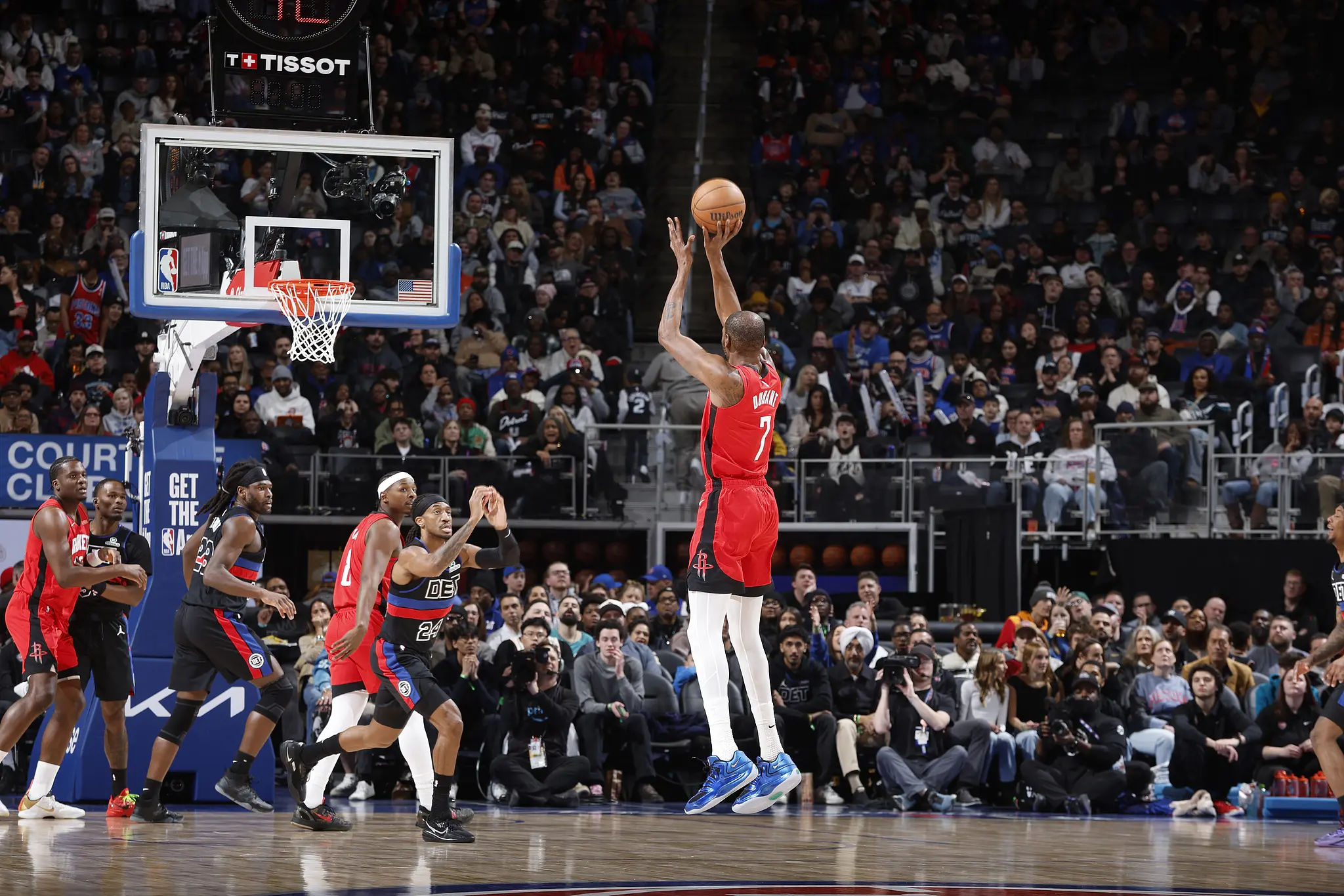 北京时间1月24日,NBA常规赛火箭背靠背111-104击败活塞,杜兰特全场苦战40分钟,19投11中、三分11中5轰下32分7篮板3助攻1抢断1盖帽,生涯三分命中数超越杰森-特里升到NBA历史三分榜第11位,再中5记三分就能超越卡特独享历史第10,火箭赢球后战绩来到27胜16负,继续排在西部第四位。